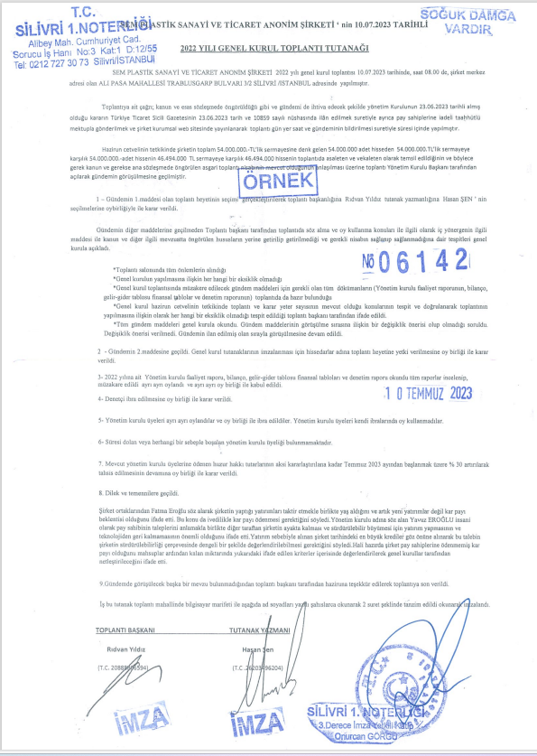 10.07.2023 tarihli 2022 yılı genel kurul tutanağı