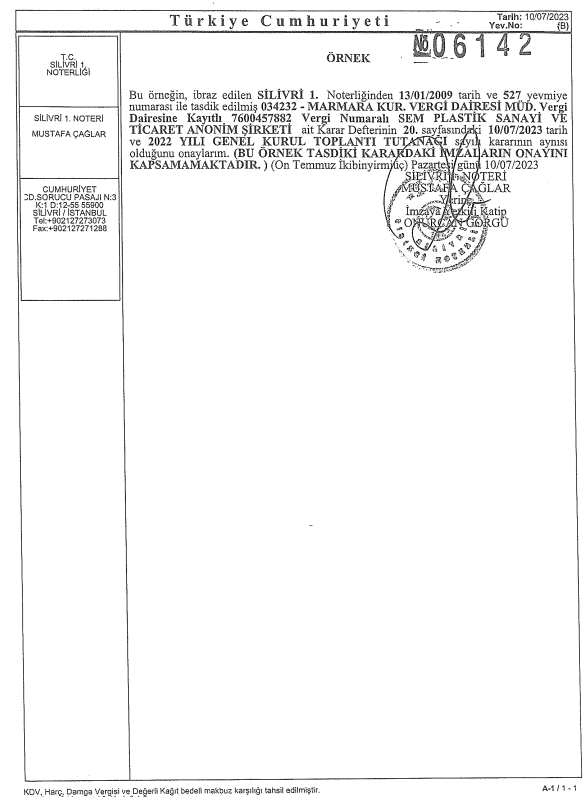 - Ticaret sicil gazetesinin 23.06.2023 tarih 10859 sayısı 1504 .sayfasında ilan edilmiştir.