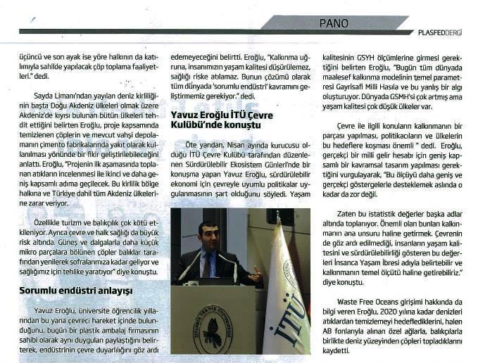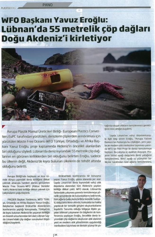 Plasfed Dergisinin 3.Sayısında WFO Başkanı Yavuz Eroğlu'nun Lübnandaki çöp dağları ve Akdeniz'e olan olumsuz etkileri konusundaki görüşlerine yer verildi.