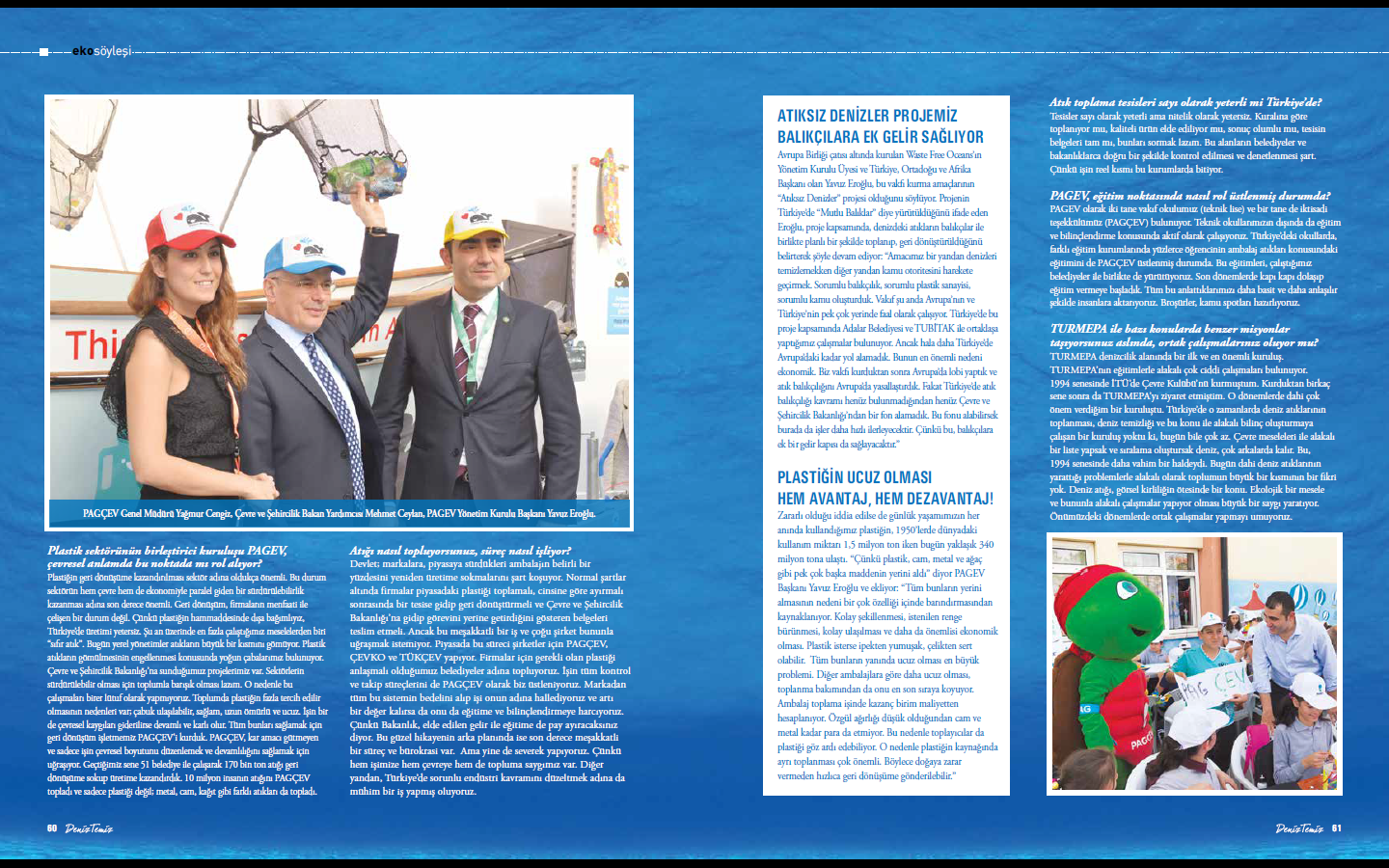 Çevre ve Şehircilik Bakanlığı’na sunduğumuz projelerimiz var. Sektörlerin sürdürülebilir olması için toplumla barışık olması lazım. O nedenle bu çalışmaları birer lütuf olarak yapmıyoruz. Toplumda plastiğin fazla tercih edilir olmasının nedenleri var; çabuk ulaşılabilir, sağlam, uzun ömürlü ve ucuz. İşin bir de çevresel kaygıları giderilirse devamlı ve karlı olur. Tüm bunları sağlamak için geri dönüşüm işletmemiz PAGÇEV'i kurduk. PAGÇEV, kar amacı gütmeyen ve sadece işin çevresel boyutunu düzenlemek ve devamlılığını sağlamak için uğraşıyor. Geçtiğimiz sene 51 belediye ile çalışarak 170 bin ton atığı geri dönüşüme sokup üretime kazandırdık. 10 milyon insanın atığını PAGÇEV topladı ve sadece plastiği değil; metal, cam, kağıt gibi farklı atıkları da topladı.