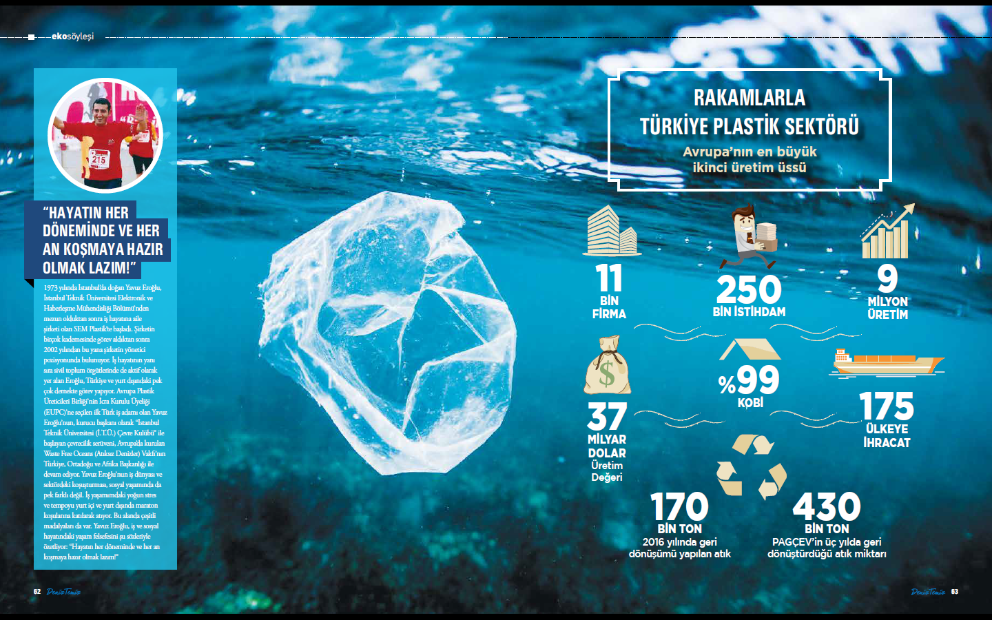 Türkiye’nin lokomotif sektörleri arasında yer alan plastik sanayisinin önde gelen kuruluşlarından Türk Plastik Sanayicileri Araştırma Geliştirme ve Eğitim Vakfı’nın Başkanı ve Avrupa Birliği çatısı altında faaliyet gösteren Waste Free Oceans’ın Yönetim Kurulu Üyesi Yavuz Eroğlu ile plastik sektörünü ve çevresel yansımalarını konuştuk. Plastiğin diğer atıklardan daha fazla ön planda olmasının nedenini görsel kirlilik olarak değerlendiren Eroğlu, kirlilikteki en yüksek payın plastiğe ait olmadığını söylüyor. PAGEV’i daha iyi tanıyarak başlayalım isterseniz... PAGEV, Türk Plastik Sanayicileri Araştırma, Geliştirme ve Eğitim Vakfı olarak 1989 yılında kuruldu. 700 civarında aktif üyemiz bulunuyor ve Türkiye'deki plastik sektörü değer zincirinin ciro olarak yüzde 88'inden fazlasını temsil etmekteyiz. Plastik Sektörünün Birleştirici Gücüyüz. Sektörün sorunlarını çözmek için kamuda, yurt içinde ve dışında aktivitelerde bulunuyoruz. PAGEV sadece plastik sektöründe değil, sektörün yan dalları olan kauçuk, kompozit gibi alanları da kapsayan bir çerçevede mesleki sivil toplum örgütü olarak faaliyet gösteriyor. Bunun yanında çalışmalarımızın önemli bir kısmını çevre ile alakalı işler oluşturuyor. Plastik, çevre ve sağlık üçgeninde etkin bir biçimde çalışıyoruz. |