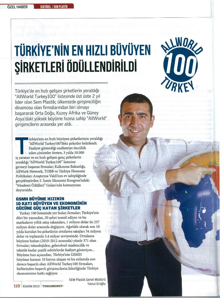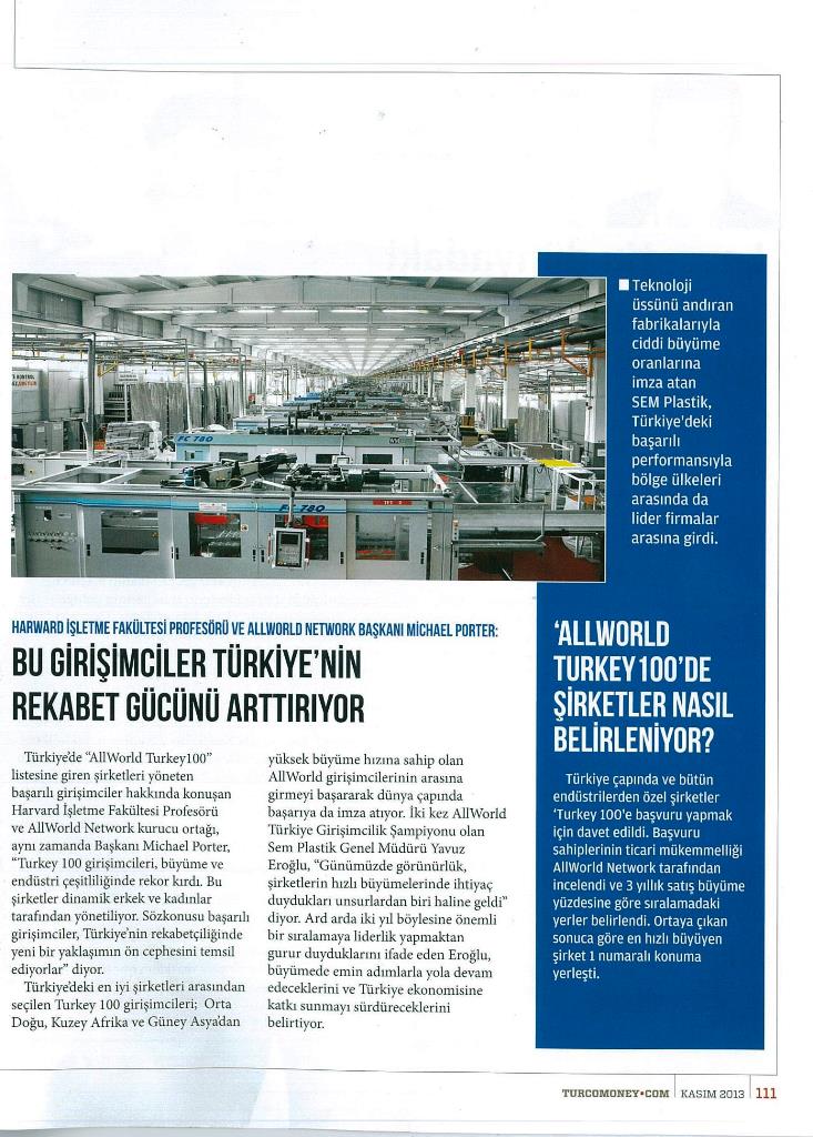 Turcomoney 'AllWorld Turkey100' ödelleri ve listeye 2 yıl üst üste giren Sem Plastik firmasını değerlendirdi.